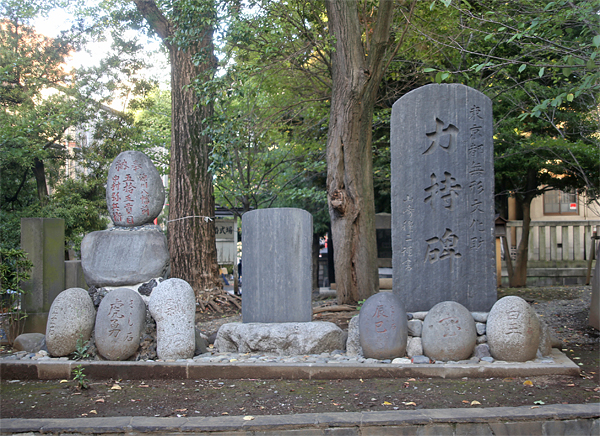 富岡八幡宮の力石持碑(ちからいしもちひ)は、江戸時代に力比べで重い石を持ち上げた力自慢の人々を称えるために建てられました。