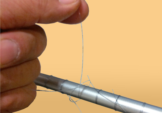 仮巻きのナイロン糸を切って取り除きます。 | ![]() |