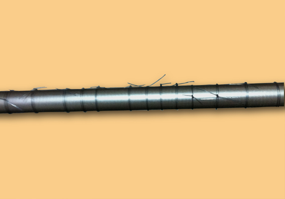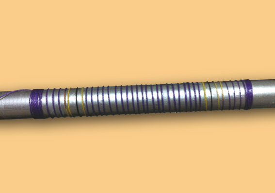 割れた部分は、幅の間隔を1、5センチにしてナイロン糸で縛っていきました。(仮巻き) | ![]() |